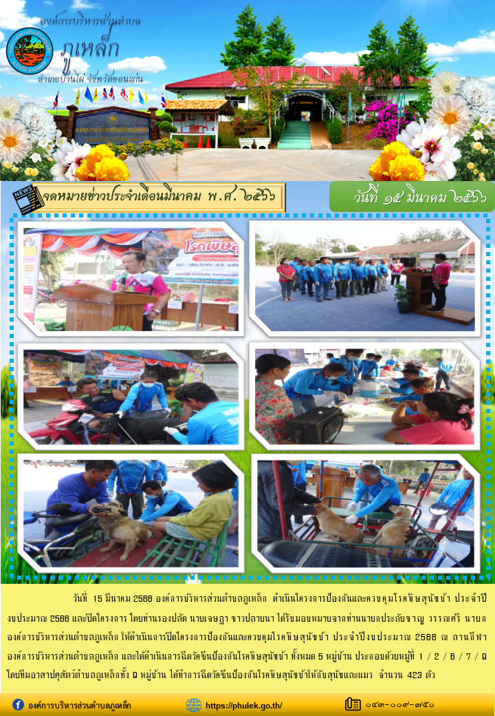 โครงการป้องกันและควบคุมโรคพิษสุนัขบ้า ประจำปีงบประมาณ 2566 [15 มีนาคม 2566]
